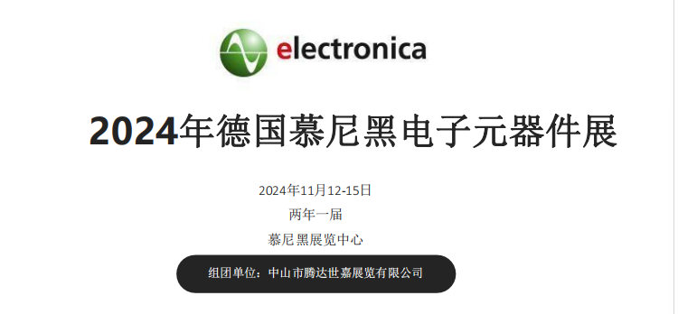 2024年德国慕尼黑电子元器件展 2024年11月12-15日 两年一届 慕尼黑展览中心 组团单位:中山市腾达世嘉展览有限公司